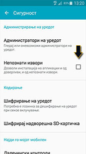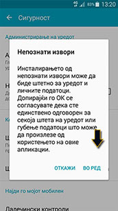 Апликацијата Mozzart бара минимална верзија на Android 2.3.3! За да ја овозможите инсталацијата на апликацијата, треба да ја означите опцијата "UNKNOWN SOURCES" на вашиот мобилен телефон.